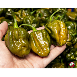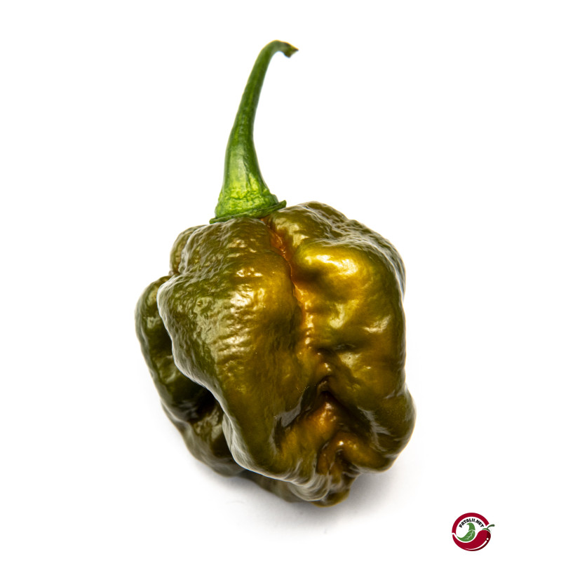 Introducing Moruga Green – a unique twist on the legendary Trinidad Scorpion Moruga. This vibrant green chili is extremely hot, delivering intense heat with a fresh, crisp profile. Its earthy, tangy flavor balances the fiery kick, making it perfect for hot sauces or spicy dishes.