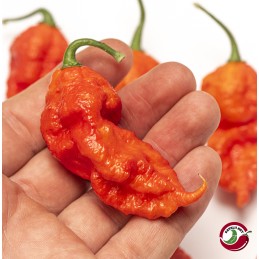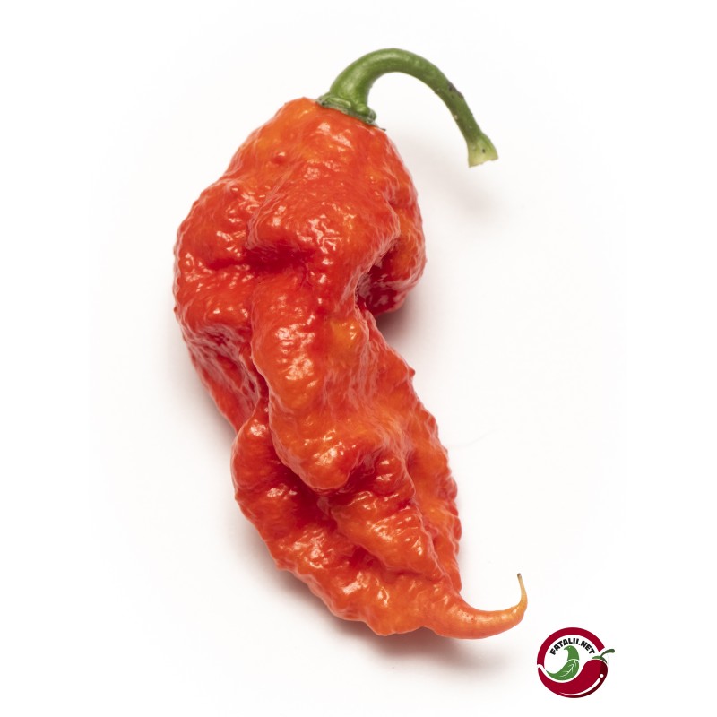 These peppers undergo a striking transformation as they mature, transitioning from vibrant green to a fiery red hue. They also sport elongated, slender tails, reminiscent of the Carolina Reaper.