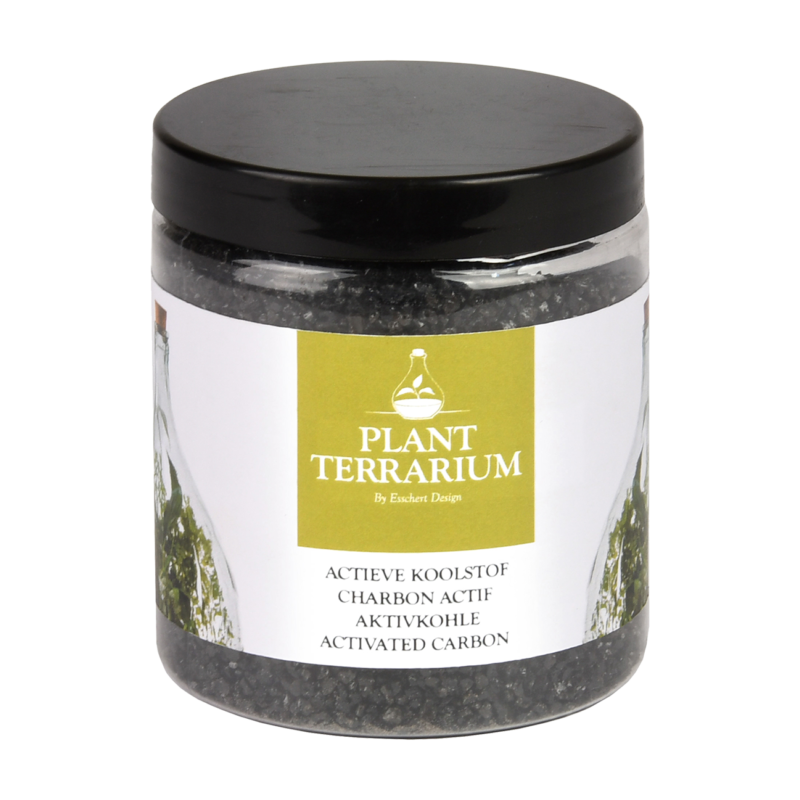 Pieni määrä aktiivihiiliraetta pitää bakteerit kurissa ja estää homeen muodostumista terraarion kasvualustaan. Riittoisa purkki 0,25l.