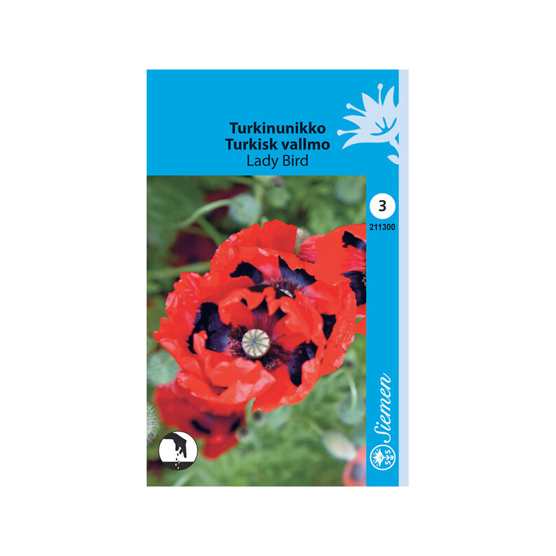 Yksinkertaiset, loistavanpunaiset kukat joissa huomiota herättävät mustat laikut terälehtien tyvessä, kuin leppäkertulla. Helppo kasvatettava kukkapenkkiin ja leikkokukaksi.
