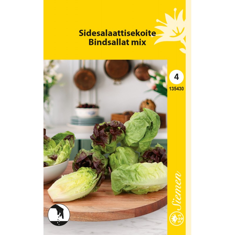 Sekoite side-, batavia- ja tammenlehtisalaattia. Kolmen viikon päästä kylvöstä pääsee jo keräämään satoa. Sopii kasvatettavaksi vaikkapa ruukussa ikkunalaudalla.