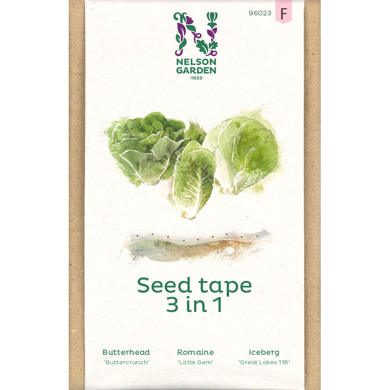 Kolmen kylvönauhan runsas seos kolmesta salaattilajikkeesta. Kasvimaassa pääosaa näyttelevät nyt keräsalaatti 'Buttercrunch', jäävuorisalaatti 'Great Lakes' ja sidesalaatti 'Little Gem'. Repäise sopivan pituinen pala kylvönauhaa ja aseta se kylvövakoon. Kastele huolellisesti ennen kuin peität nauhan sentin paksuisella multakerroksella. Tarkista, että nauhan päät eivät ole näkyvillä (muuten linnut saattavat tarttua niihin). Jos peität katekankaalla, itämisaika lyhenee ja on noin 2-4 viikkoa. Kylvöala on tärkeää pitää kosteana.